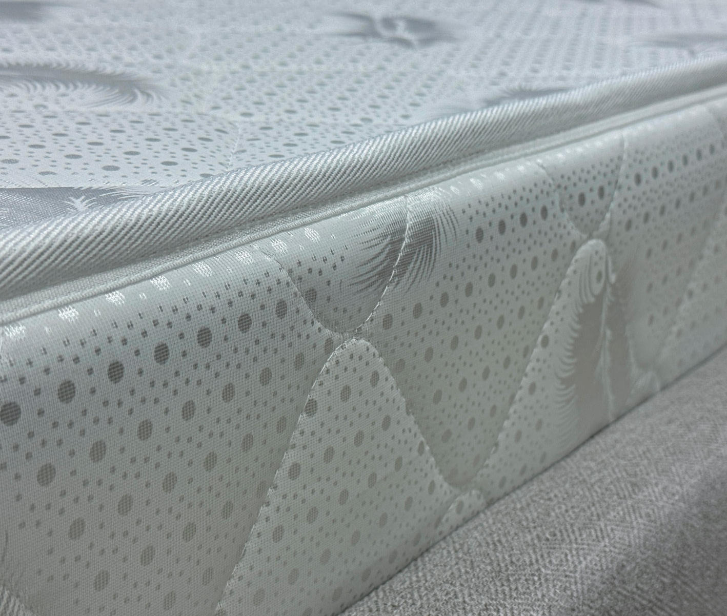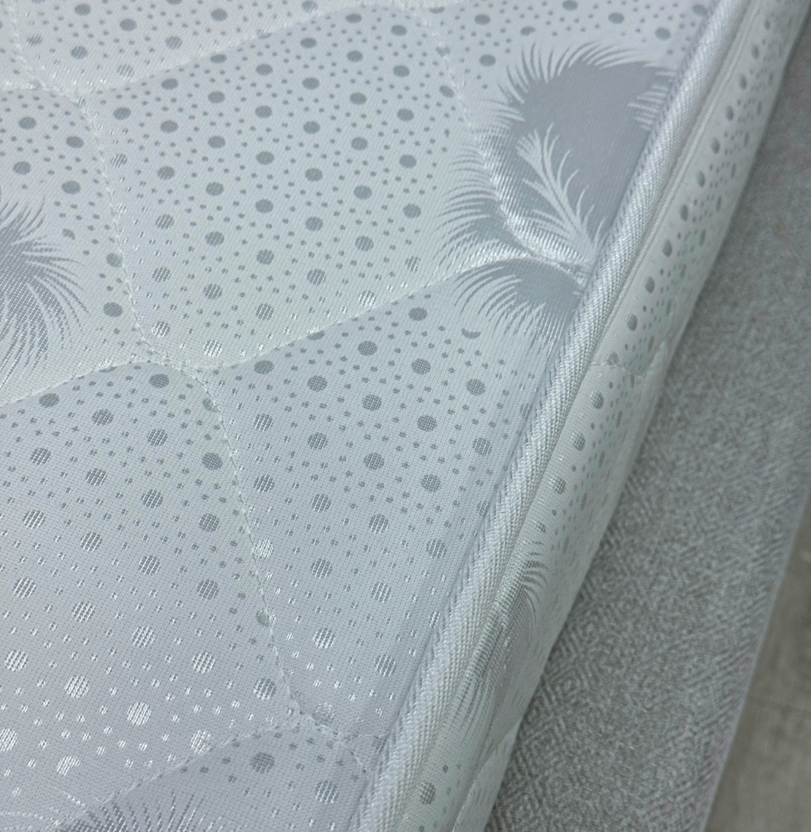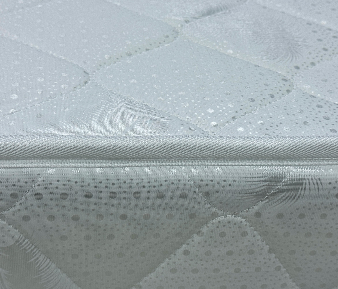 Жаккард белый - это высококачественная ткань, которая является ключевым элементом комфорта любого матраса. Изготовленная из сочетания хлопка и полиэстера, она объединяет мягкость натурального волокна и прочность синтетической нити. Ткань обладает отличными эксплуатационными свойствами: Гипоаллергенность — безопасна для чувствительной кожи. Материал «дышит» — обеспечивает оптимальный микроклимат во время сна. Долговечность — сохраняет форму матраса и внешний вид при длительном использовании.