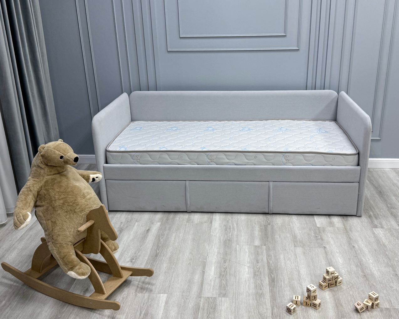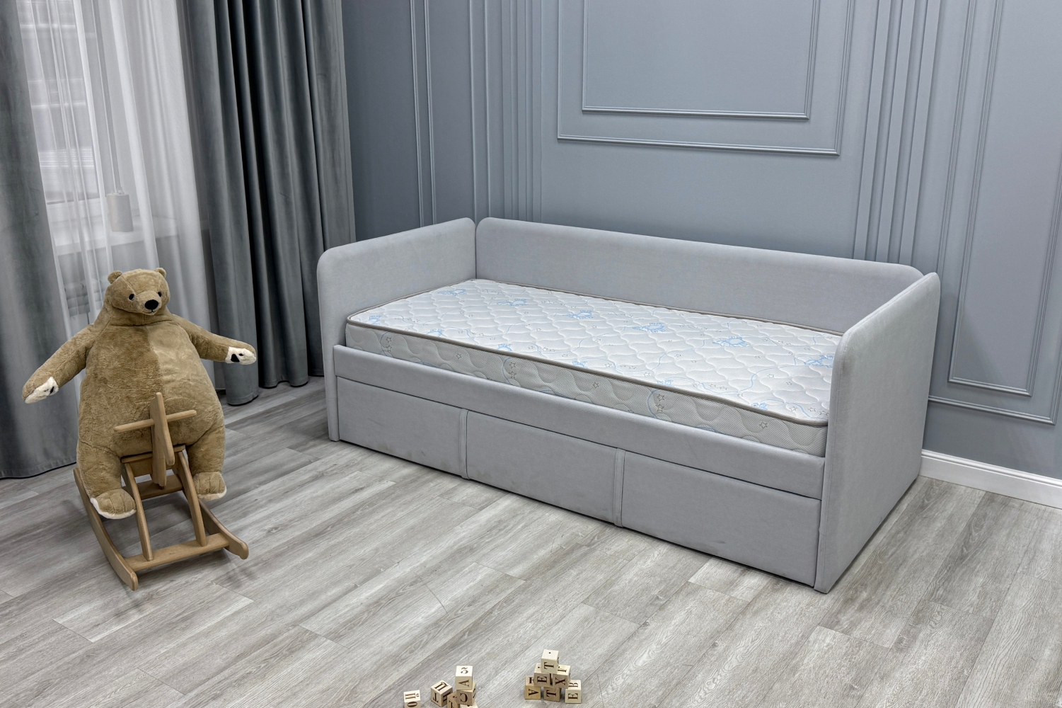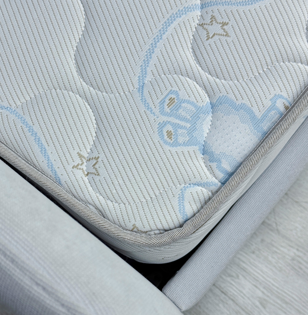 Трикотаж «Ovis» - это мягкий, дышащий и приятный на ощупь материал, созданный специально для обеспечения максимального комфорта и безопасности ребёнка во время сна. Благодаря своей эластичной структуре ткань легко подстраивается под форму матраса, не образуя складок, а высокая износостойкость гарантирует долгий срок службы. Материал обладает хорошей воздухопроницаемостью, что помогает поддерживать оптимальный микроклимат в спальном месте. Поверхность трикотажа «Ovis» гипоаллергенна и не вызывает раздражений, что особенно важно для чувствительной детской кожи.